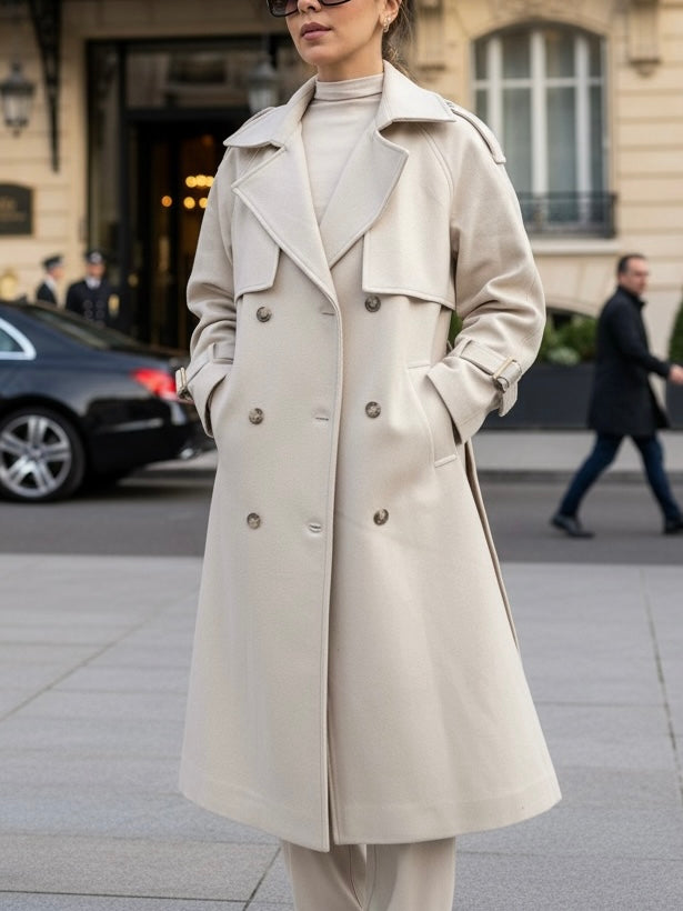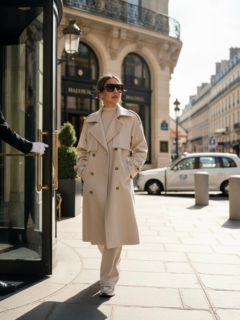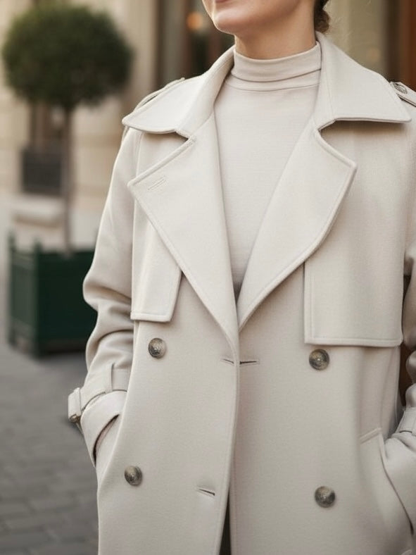 מעיל ארוך בגזרת טרנץ' מחויטת, עשוי בד איכותי במראה נקי ומעודן. העיצוב כולל כתפיות, כפתורים כפולים וקשירות שרוול ליצירת לוק אייקוני ונצחי. מושלם לשילוב מעל כל אאוטפיט – יומיומי או ערב – ומעניק נוכחות אלגנטית עם טאץ' מודרני.