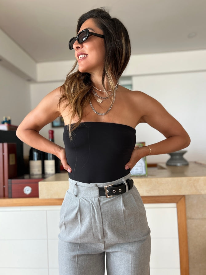 בגד גוף סטרפלס שחור קלאסי ומחמיא, עשוי בד נעים שמחבק את הגוף ומדגיש את הקווים הנכונים. בסיס מושלם ללוק ערב אלגנטי או לשילוב יומיומי מלא שיק וביטחון.