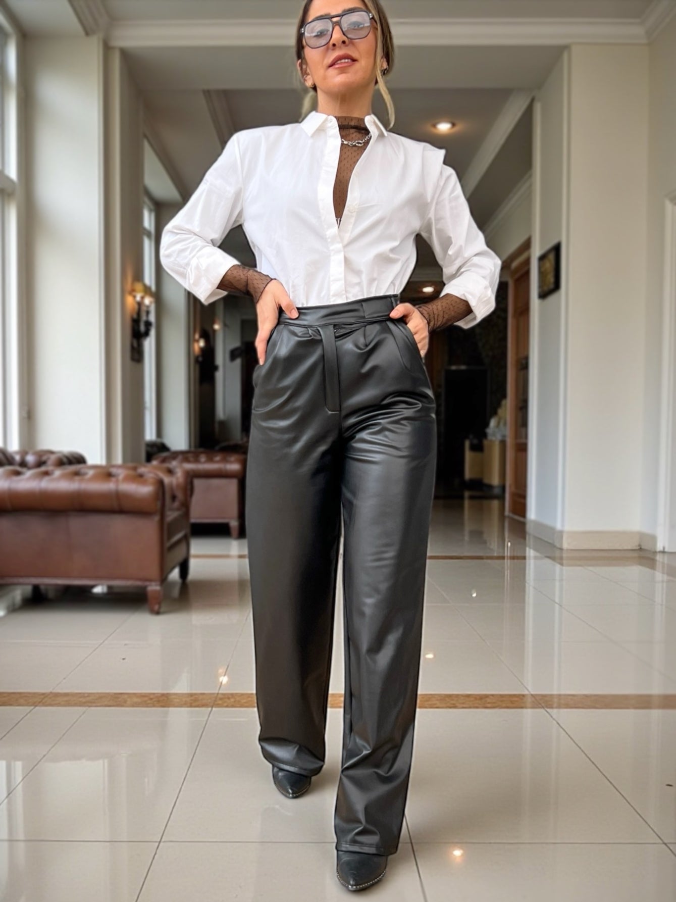 מכנס שון השחור הוא הבחירה המושלמת למראה מחוספס אך מתוחכם. בגזרה מחמיאה ובגימור דמוי עור יוקרתי, הוא מעניק טאץ' אופנתי ונועז לכל לוק. הבד הגמיש והנוח מבטיח התאמה מושלמת ונוחות לאורך כל היום. אידיאלי לשילוב עם חולצה אלגנטית למראה ערב מתוחכם או עם טופ קז'ואלי לשיק יום-יומי מלא נוכחות.