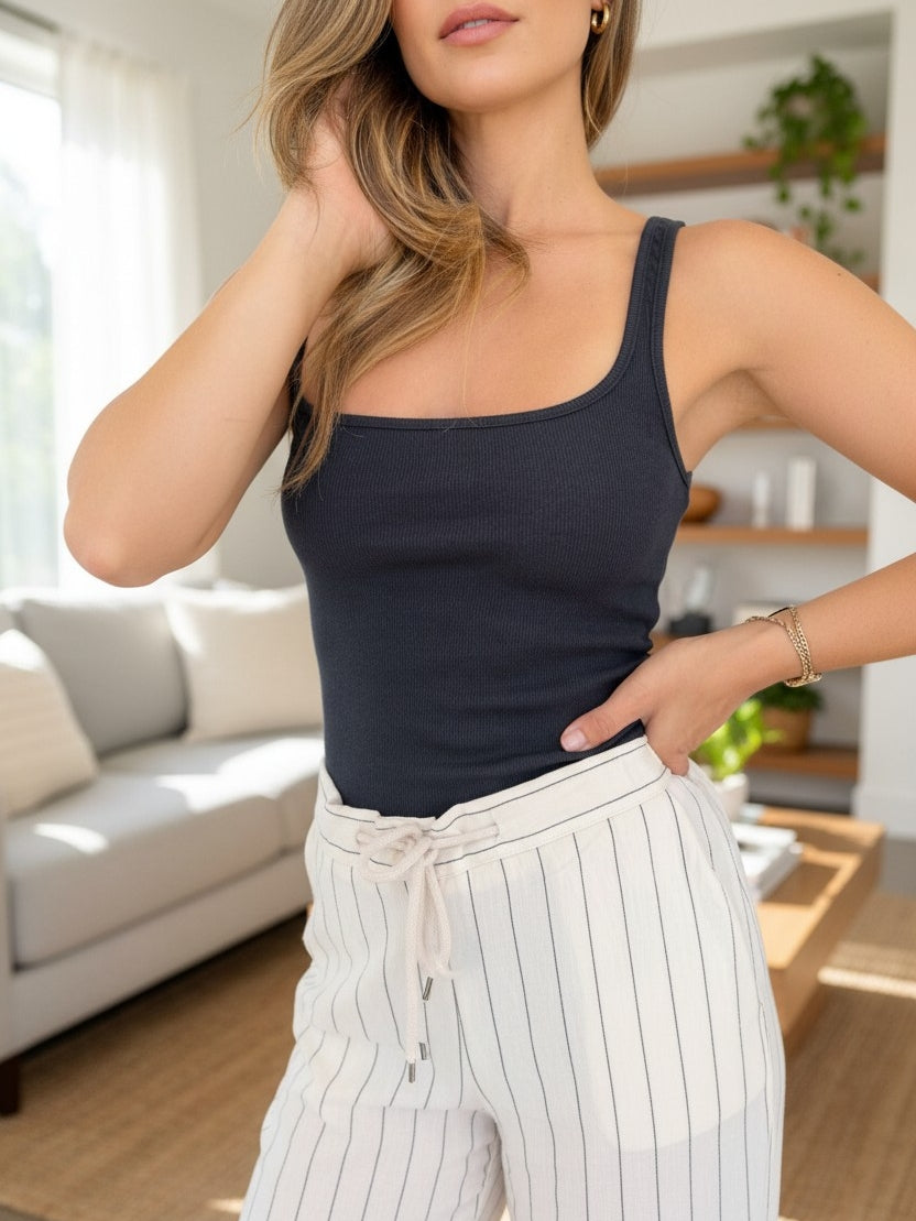 גופיית סבא קלאסית עם טוויסט מדויק – קו נקי, מפתח עגול וחיתוך מחמיא שיושב בדיוק כמו שצריך. עשויה מבד נעים ואיכותי שמרגיש טוב על הגוף.