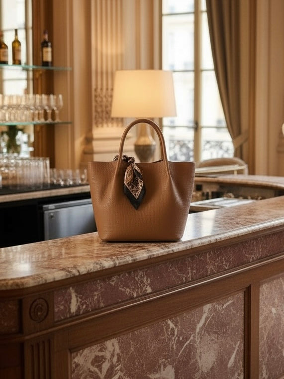 תיק עור פרימיום בגוון חום-קלאסי, בעיצוב מינימליסטי ונקי שמעניק לו מראה יוקרתי ועל-זמני. עשוי עור מלא רך ואיכותי בעל טקסטורה טבעית שמוסיפה עומק ואופי לכל לוק. בעל מבנה מרווח ושימושי שמתאים לשגרת היום לצד הופעות ערב אלגנטיות. התיק המושלם לנשים שמעריכות איכות בלתי מתפשרת, עיצוב מדויק וסטייל מעודן שמדבר בעד עצמו."