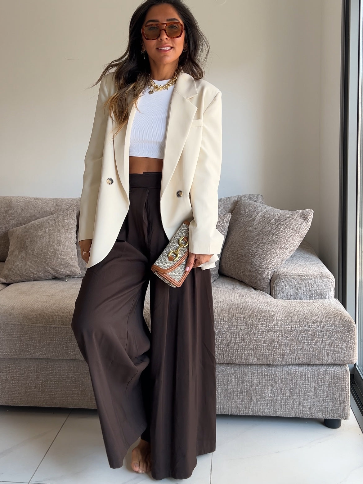 מכנס מבד קליל ונשפך, נעים למגע, שמעניק תחושה של חופש ונוחות לאורך כל היום. הגזרה האלגנטית שלו מתמזגת בצורה מושלמת עם שימוש יומיומי – מכנס שאת יכולה ללבוש גם לעבודה, גם לפגישה חשובה וגם ליציאה קלילה בערב. הוא מחמיא לגוף, משתלב בקלות עם כל טופ, ונותן ללוק שלך טאצ’ עדין ויוקרתי מבלי להתאמץ.