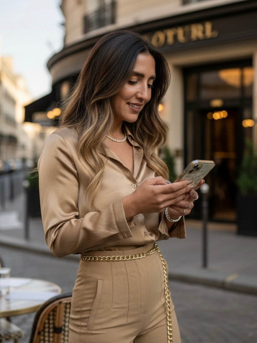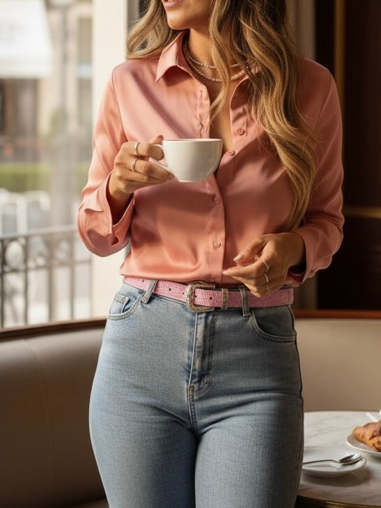 חולצת סאטן יוקרתית במראה משי המעניקה טאץ' של שיק וזוהר לכל לוק.
