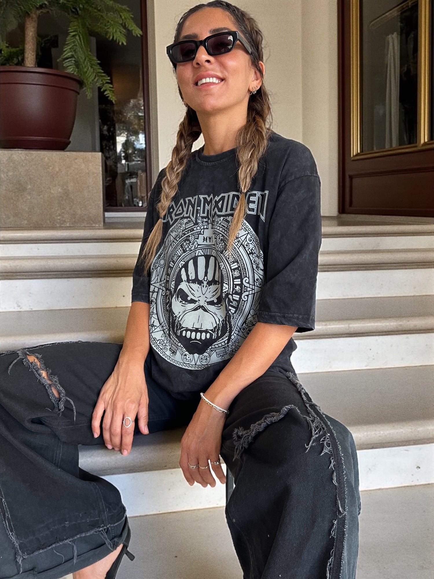 טי שירט 100% כותנה, עם הדפס עוצמתי שמביא את הווייב של להקות המטאל הגדולות. גזרה נוחה ושיק רוקיסטי שלא מתאמץ – מושלם ללוק יומיומי עם טוויסט בועט.