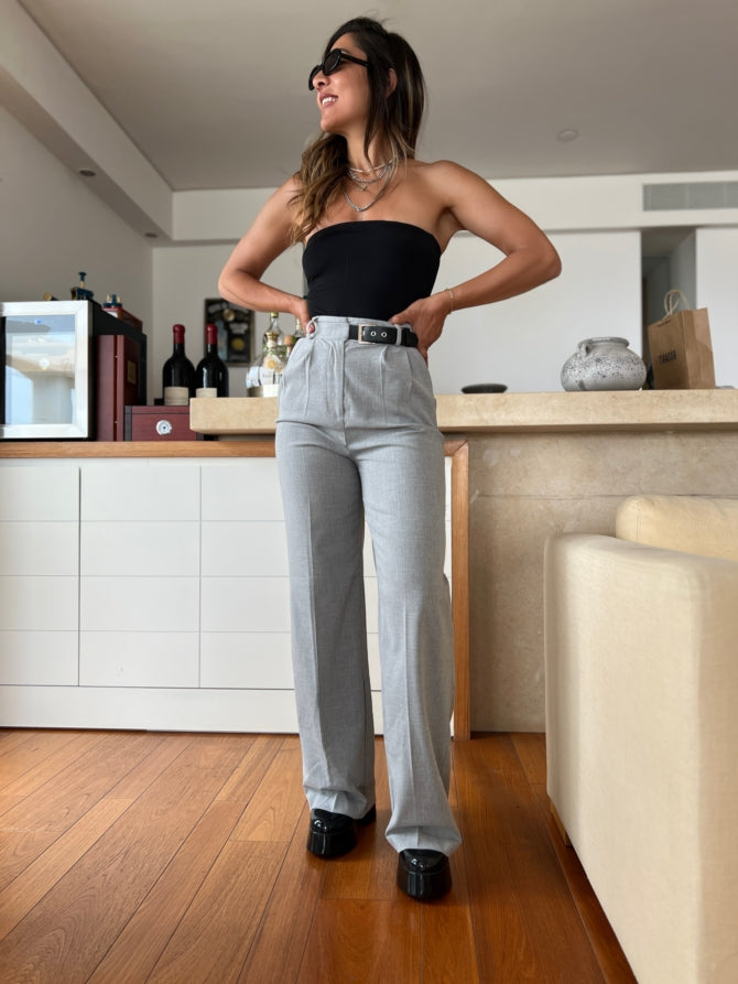 מכנס "קווין" בגוון אפור על זמני, בגזרה אלגנטית מחמיאה ובד חמים ומפנק. מגיע עם חגורת אבזם שמשדרגת את הלוק ומוסיפה טאץ' מדויק של סטייל מתוחכם – הבחירה המושלמת לימים קרירים עם מראה מוקפד.