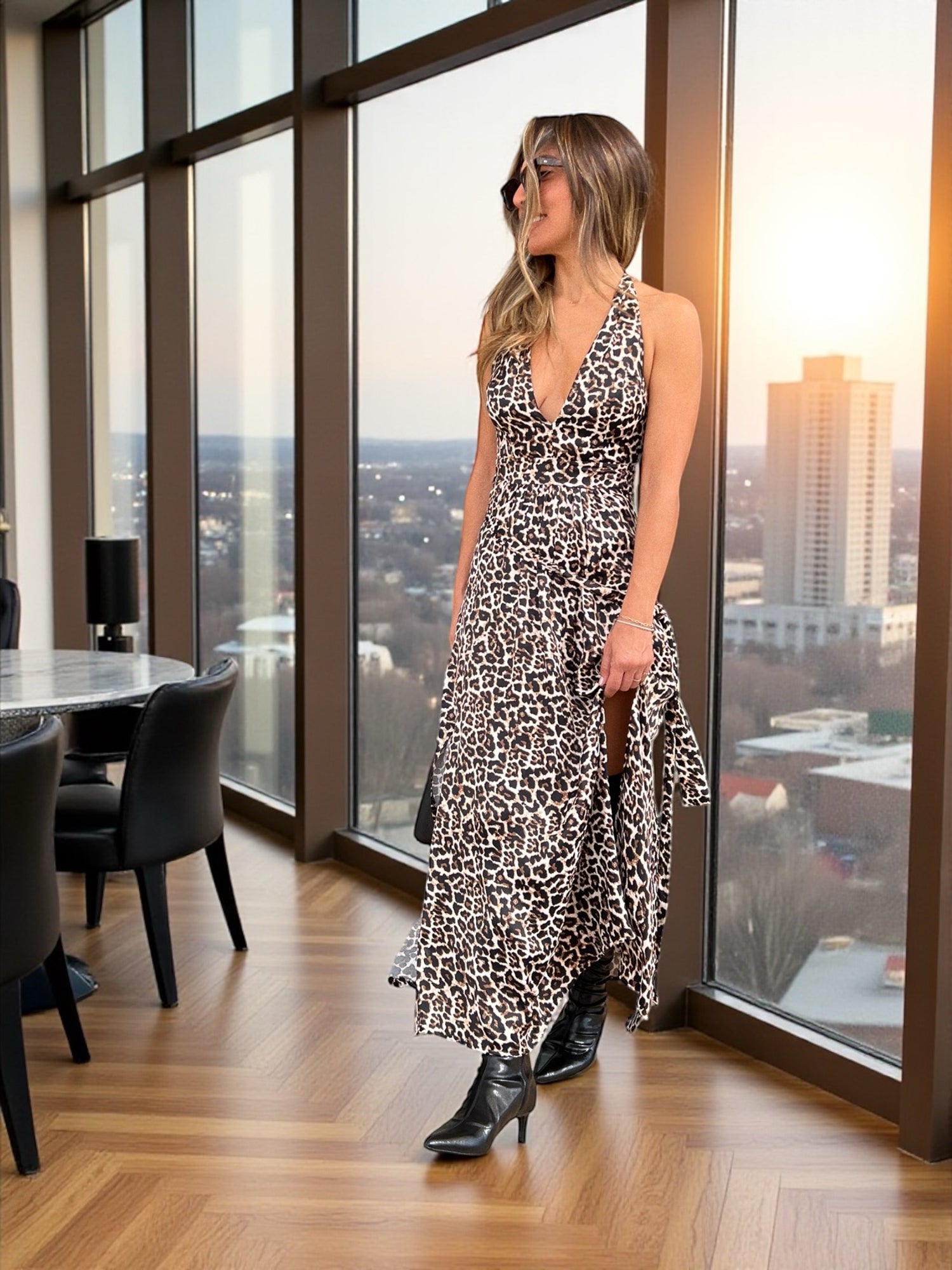 הדפס מנומר נועז, מחשוף עמוק שמדגיש את הנשיות, ובד זורם שנע איתך בכל צעד.