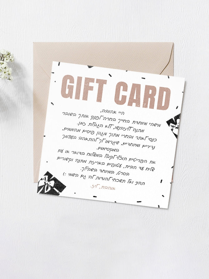 כרטיס מתנה דיגיטלי למימוש באתר