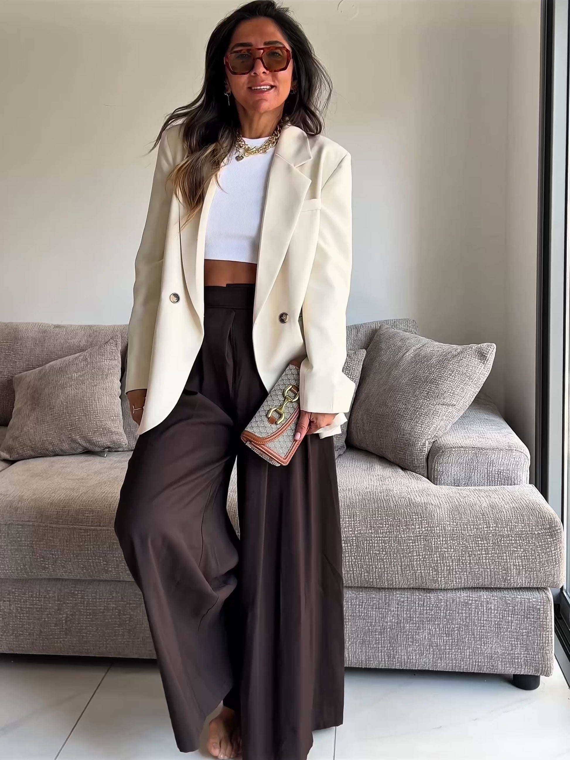 מכנס מבד קליל ונשפך, נעים למגע, שמעניק תחושה של חופש ונוחות לאורך כל היום. הגזרה האלגנטית שלו מתמזגת בצורה מושלמת עם שימוש יומיומי – מכנס שאת יכולה ללבוש גם לעבודה, גם לפגישה חשובה וגם ליציאה קלילה בערב. הוא מחמיא לגוף, משתלב בקלות עם כל טופ, ונותן ללוק שלך טאצ’ עדין ויוקרתי מבלי להתאמץ.