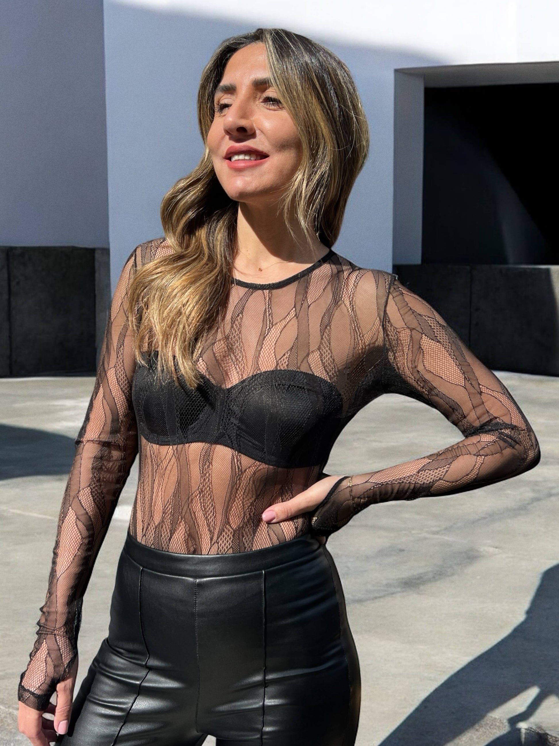 בגד הגוף רוז עשוי מבד רשת מחמיא וייחודי, שמעניק שילוב מושלם של סקסיות ואלגנטיות. עם גזרה מחטבת וכפפות מובנות להשלמת הלוק, הוא יוצר מראה מתוחכם ומלא נוכחות. הבד הגמיש והנוח מאפשר התאמה מושלמת לגוף, מה שהופך אותו לפריט אידיאלי לערב אופנתי עם חצאית מחויטת או מכנסי עור, או לשילוב נועז עם ג'ינס לשיק יומיומי מתוחכם.